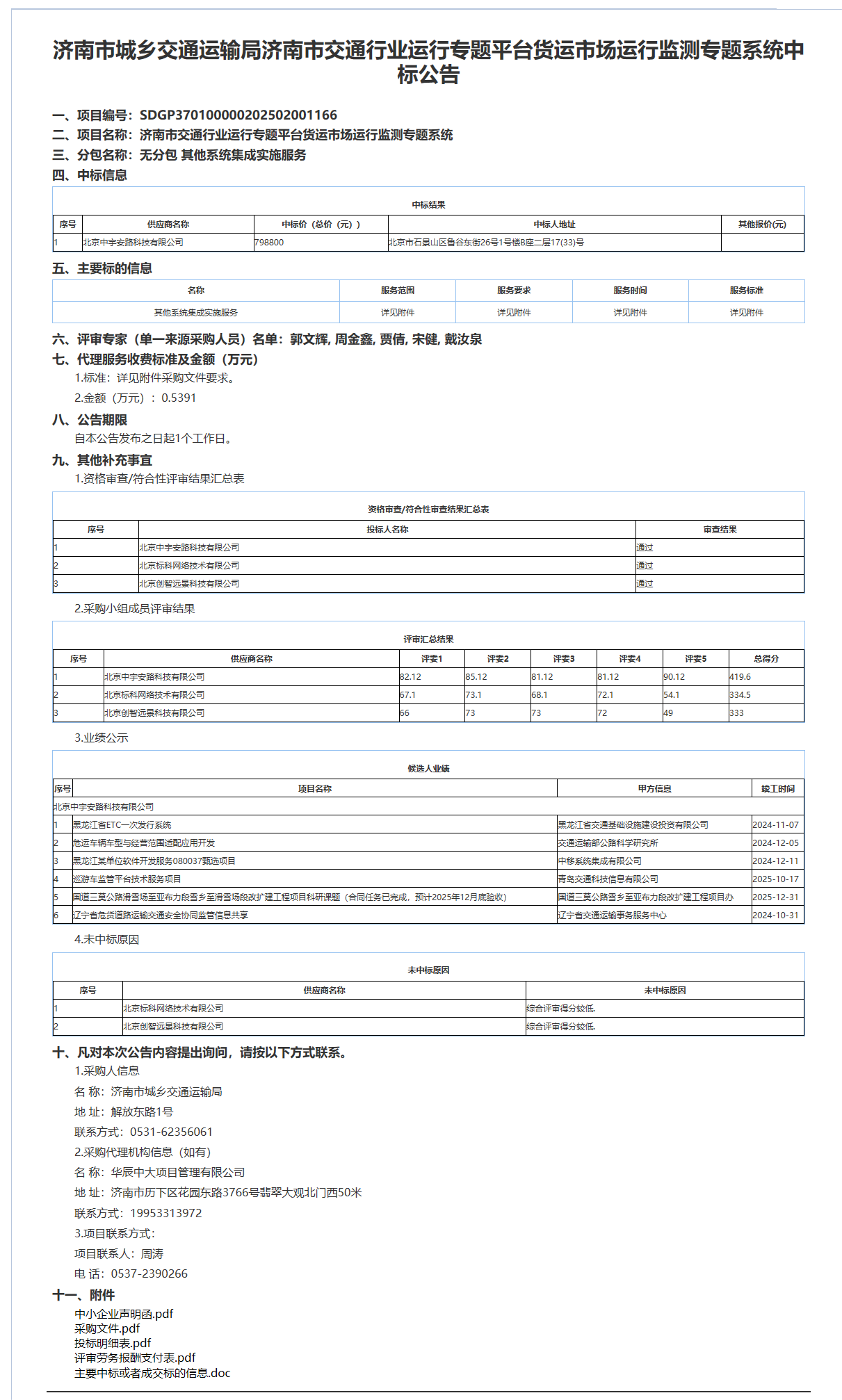 济南市城乡交通运输局济南市交通行业运行专题平台货运市场运行监测专题系统中标公告